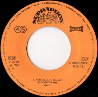 Prodám SP - Kern – V sobotu ne / Exploze (Supraphon – 11 0225-7311, Series: Rockmapa – 3, Vinyl, 7", 45 RPM, Czechoslovakia, Heavy Metal) vydané v roce 1989. SP je ve velmi dobrém stavu. Převzetí v Praze nebo poštou + poštovné. Na dobírku nezasílám.